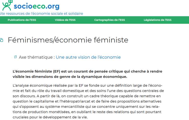 Page ressource qui centralise de la documentation sur l'économie féministe.