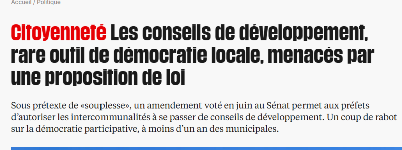 Les conseils de développement, rare outil de démocratie locale, menacés par une proposition de loi