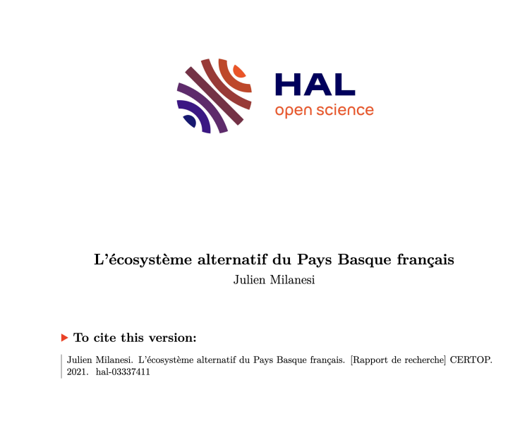 "Ce rapport est la première étape d’un travail de recherche sur l’Eusko. Dans le cadre d’un projet de recherche collectif sur les monnaies locales, nous avons fait le choix de concentrer notre attention sur l’ «écosystème alternatif » dans lequel est né celle du Pays Basque français. Lorsque l'on commence à tirer le fil de l'Eusko, c'est en effet toute la bobine des alternatives développées dans le domaine économique sur ce territoire ces quatre ou cinq dernières décennies qui vient. Par son histoire, par sa gouvernance partagée, l'Eusko apparait comme un des éléments (dont il reste à analyser la place) d'un écosystème d'organisations beaucoup plus large et dont il tire inévitablement de la force et du dynamisme. Comprendre comment cet écosystème peut constituer une ressource pour la monnaie locale basque, et inversement comment celle-ci peut participer au développement de l’écosystème, nécessite néanmoins au préalable de documenter et d'analyser ce dernier. C'est l'objet de ce premier rapport de recherche."